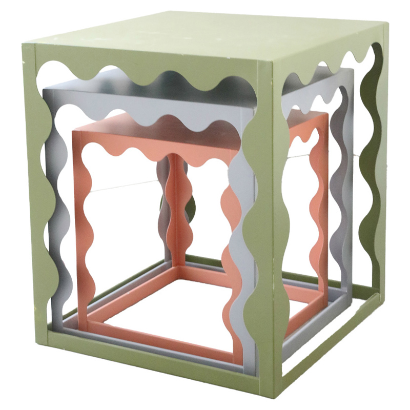 波打った曲線のフレームデザインに3色のカラーが組み合わさることで