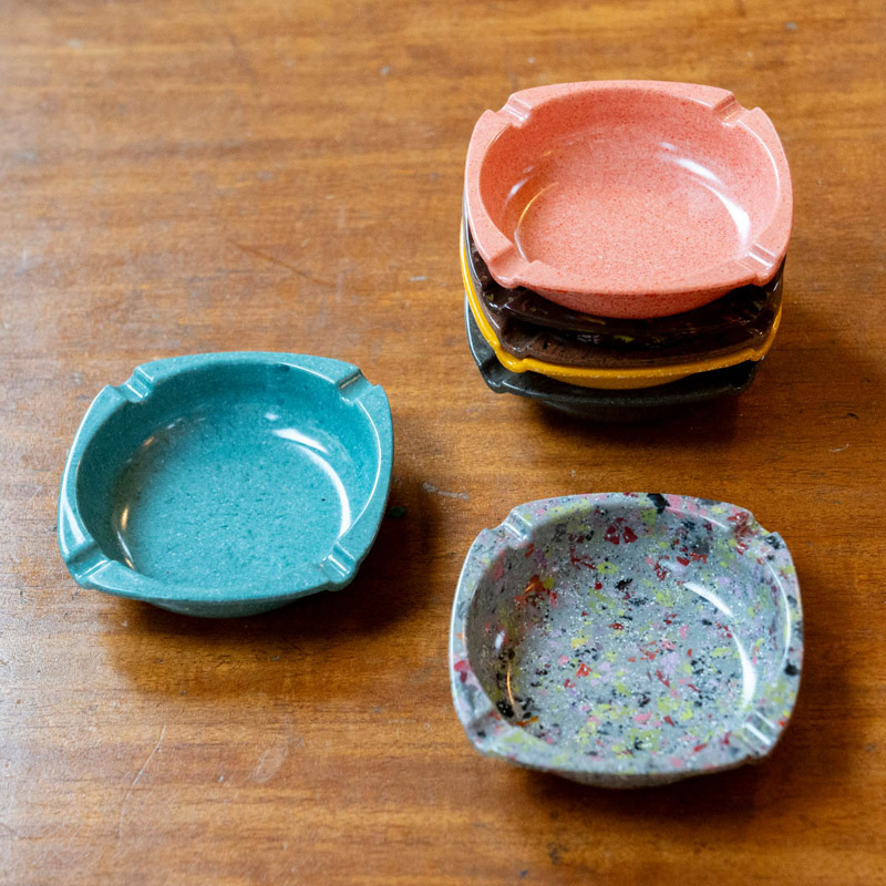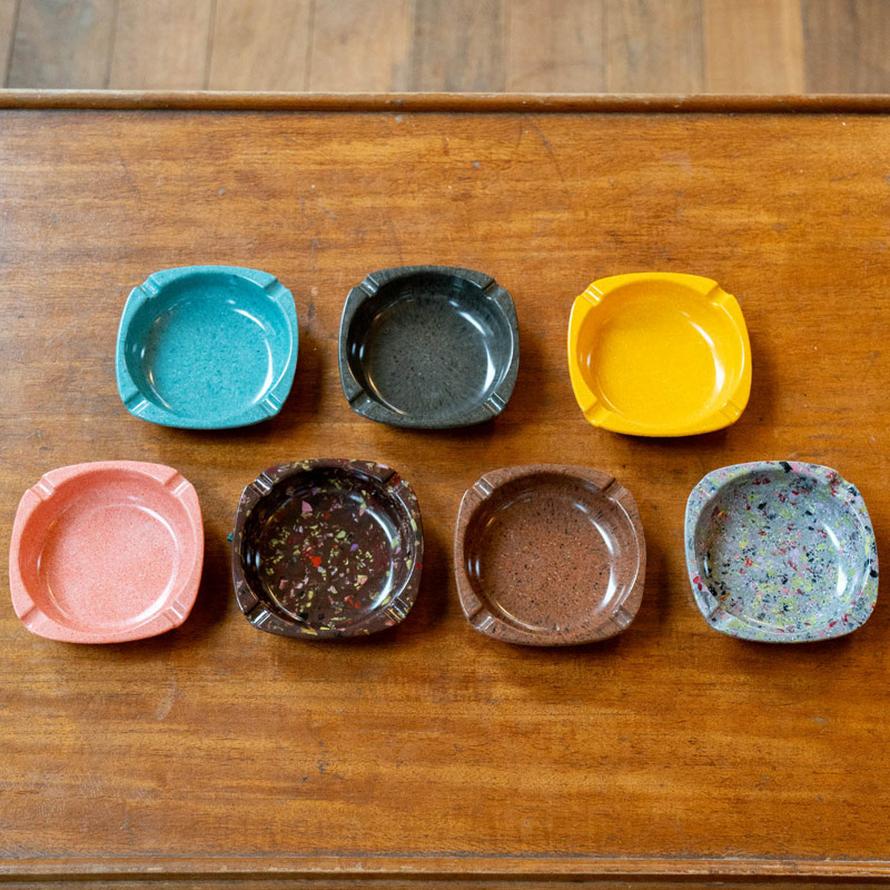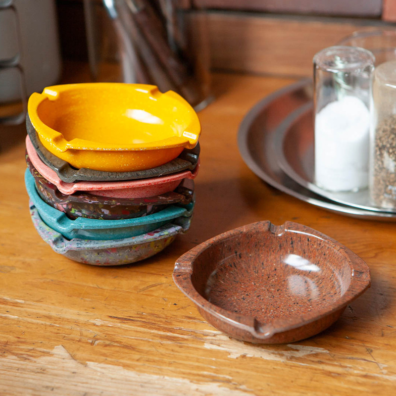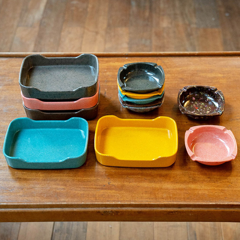 リユースのメラミン材を混ぜ込んでつくられたアッシュトレイ。
