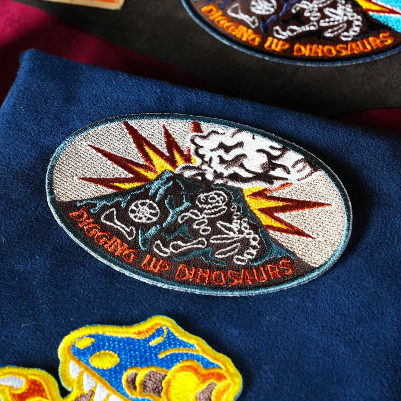 古代の息吹を刺繍で表現したワッペンは、一枚でも迫力満点。
