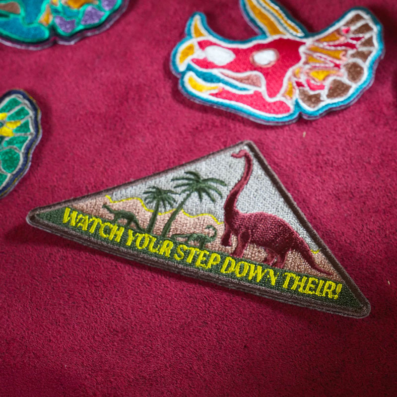 恐竜をモチーフにした鮮やかな色合いのワッペン。