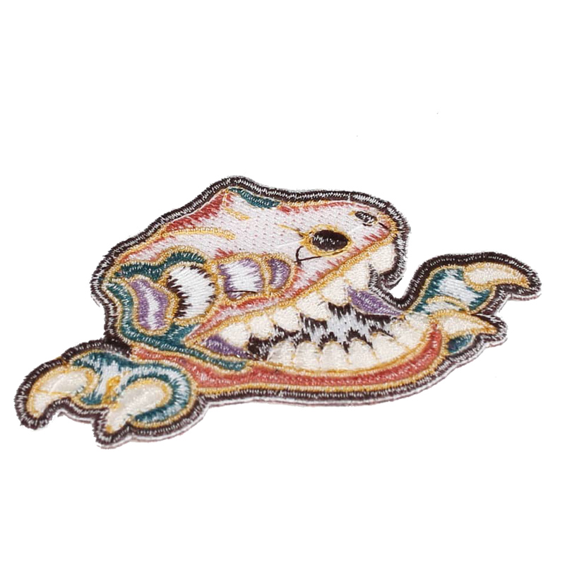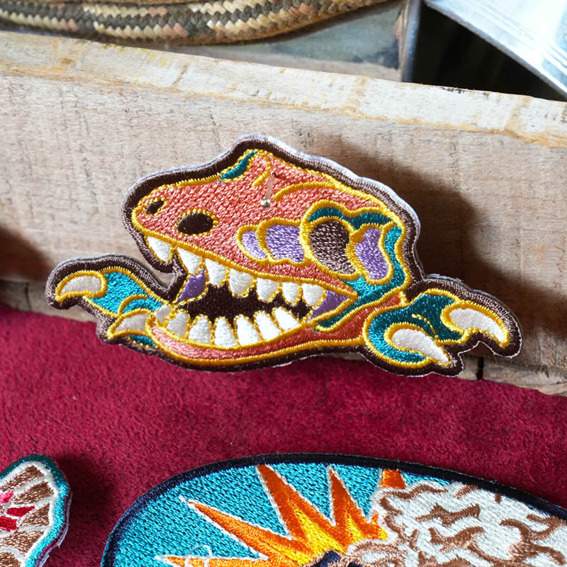 古代の息吹を刺繍で表現したワッペンは、一枚でも迫力満点。