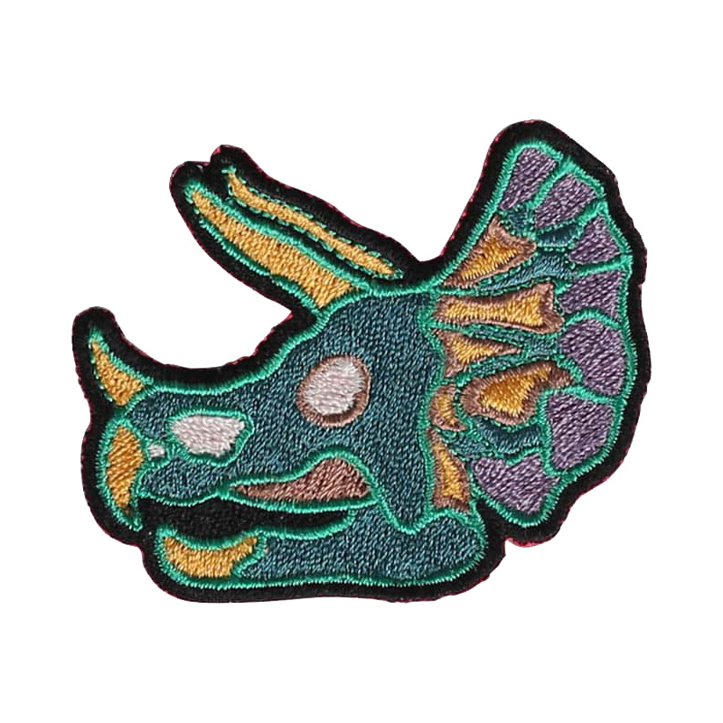 恐竜をモチーフにした鮮やかな色合いのワッペン。