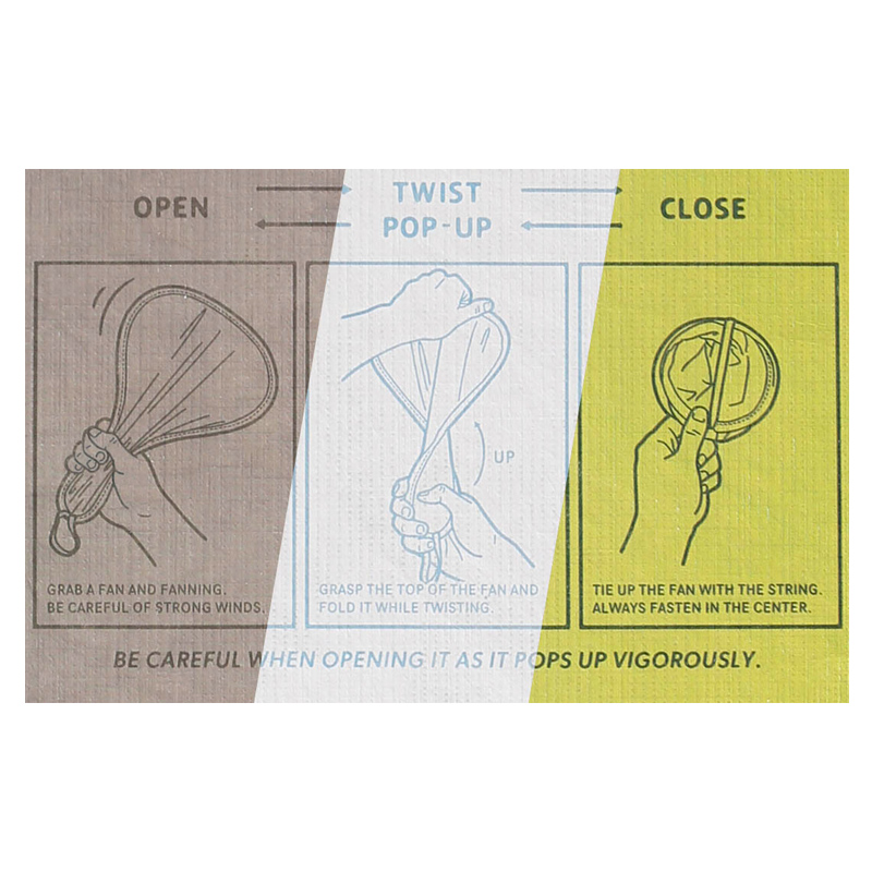 紐を解くと飛び出すように開いて、涼む手段に変化!