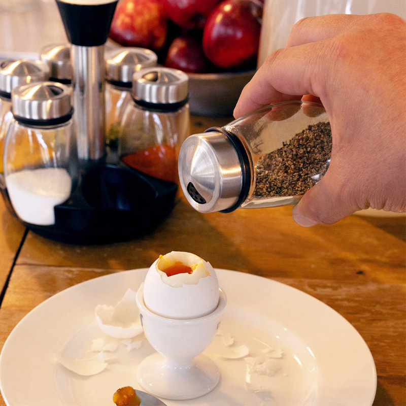 シンプルで清潔感のあるデザインが魅力のスパイスジャー。