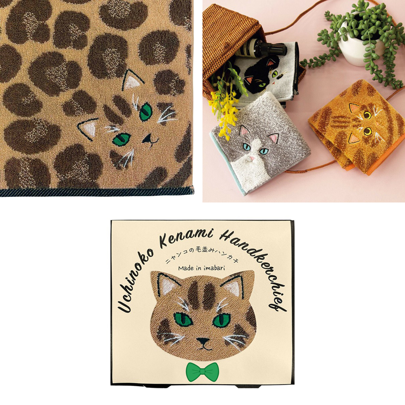 ニャンコの柄をデザインした、個性豊かなハンカチ!