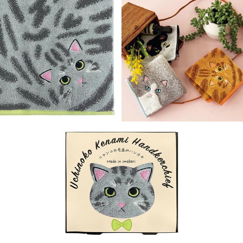 ニャンコの柄をデザインした、個性豊かなハンカチ!