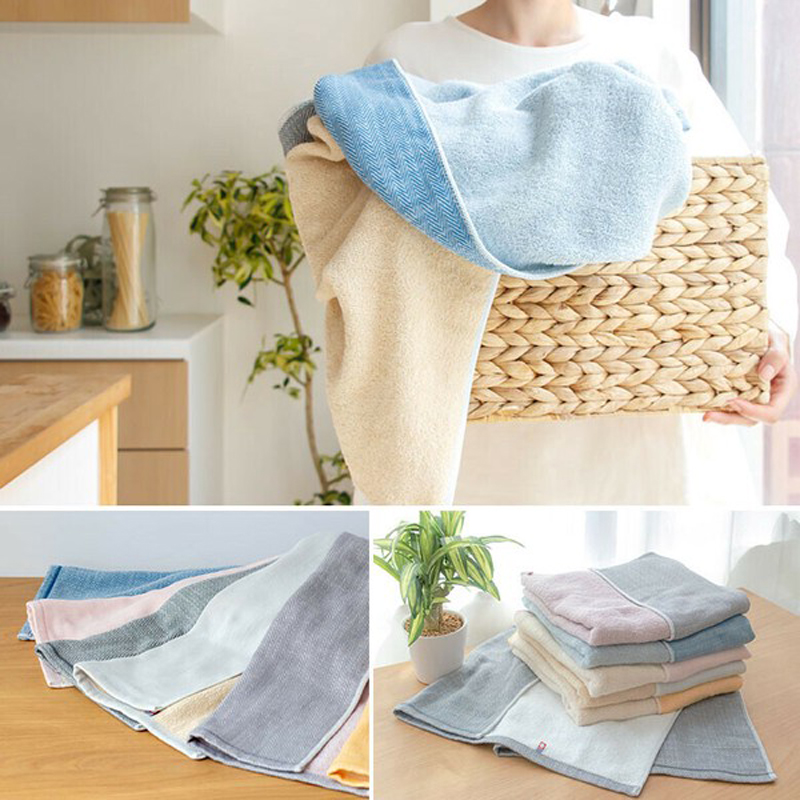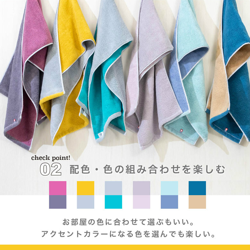 ガーゼとパイルの異なる風合いとリバーシブルカラーが楽しめるやさしいタオルです。