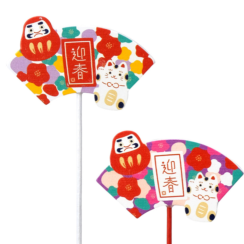 ■GREEN HOUSE(グリーンハウス)■■2026 お正月グッズ 新作■ 木製プレートピック ハイカラ扇(2種×各6本)
