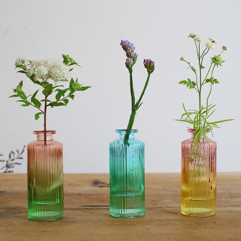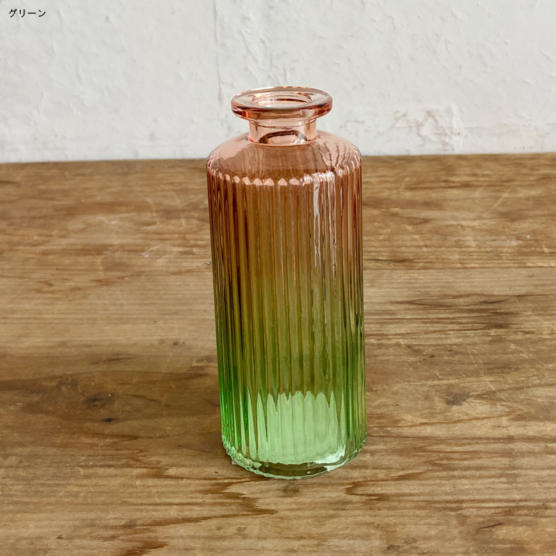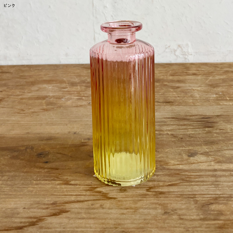 手のひらサイズのガラスベースに2色のグラデーションを組み合わせたフラワーベース。