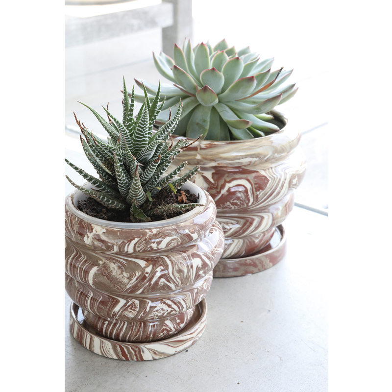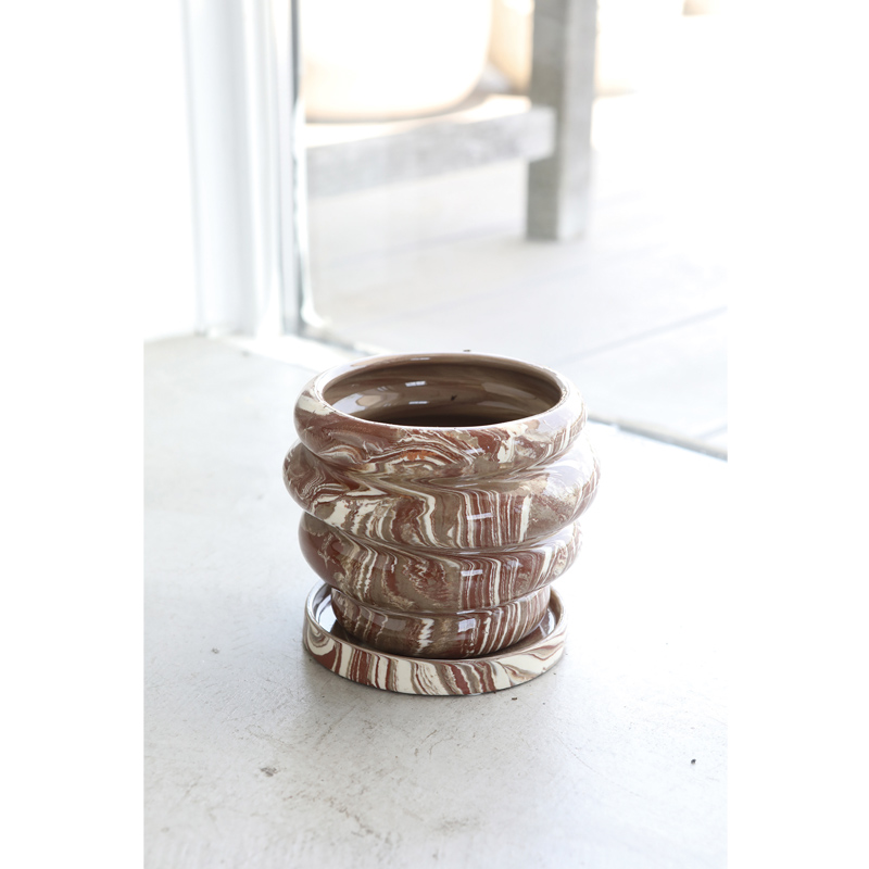 深めのコーヒーブラウンが大人びた印象のマーブル柄シリーズ。