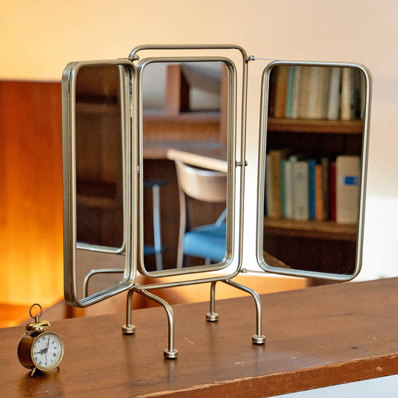 卓上タイプの3面鏡で、中央のミラーは角度調整可能。