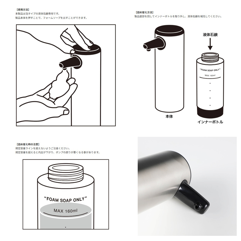頭をワンプッシュするだけで、きめ細かなフォームソープを出すことができます。