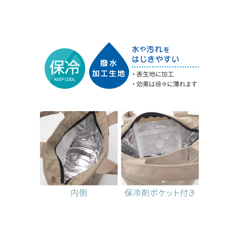 素材 | 本体:ナイロン100% 内側:アルミシート 持ち手:ポリエステル100% 撥水加工 |
