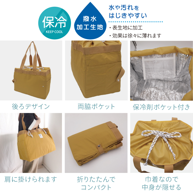素材 | 本体:ナイロン100% 内側:アルミシート 持ち手:ポリエステル100% 別布:ポリエステル100% 撥水加工 |