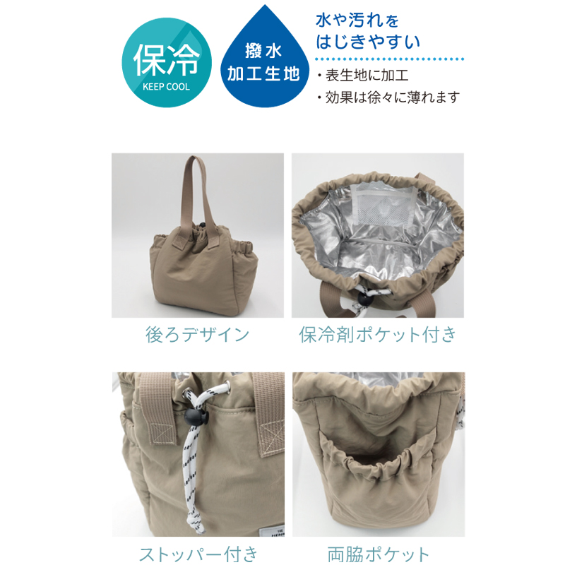素材 | 本体:ナイロン100% 内側:アルミシート 持ち手・紐:ポリエステル100% 撥水加工 |