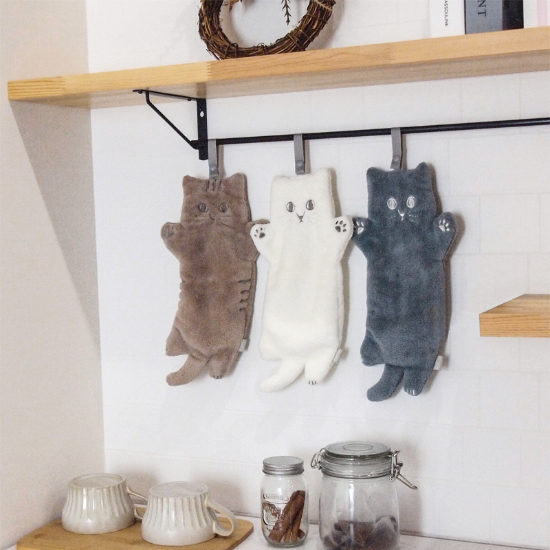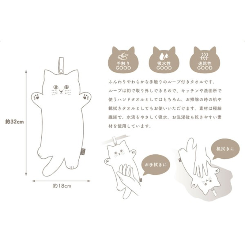 ループ付きのタオルで、キッチンなどの水回りはもちろん、お掃除のときや机や鏡拭きにも使えます♪