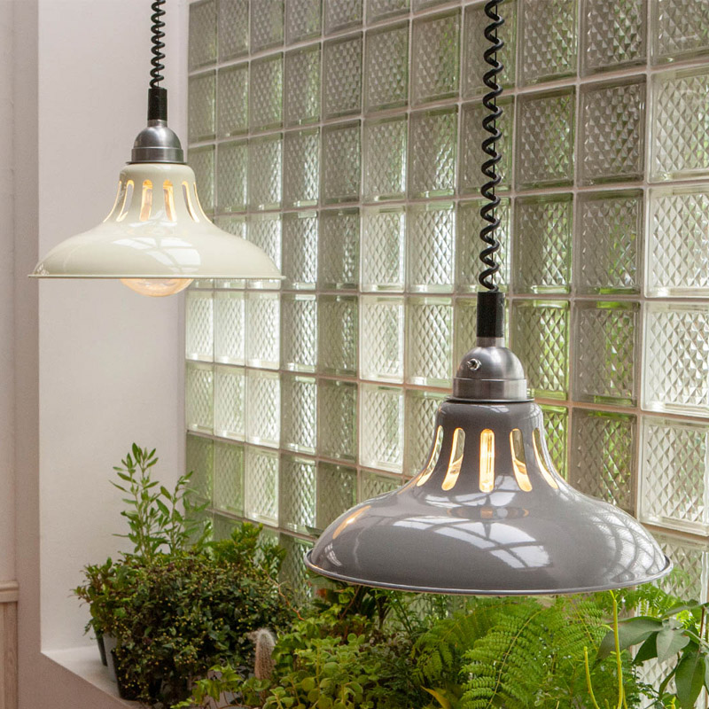 無骨なスチールシェードは、ワークテイストはもちろん、カジュアルな空間にもマッチ。