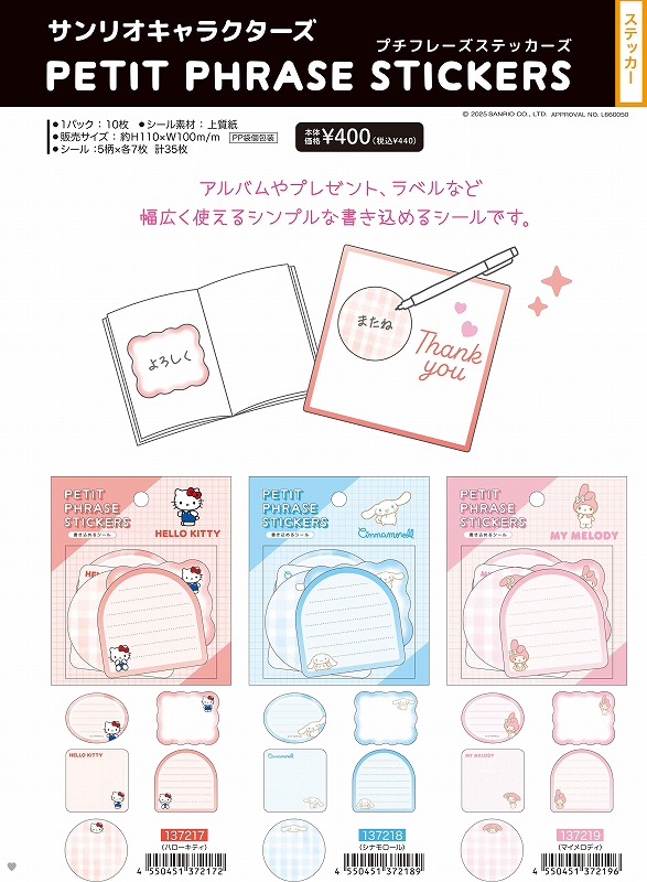■CRUX(クラックス)■■2025AW 先行予約■ サンリオキャラクターズ プチフレーズステッカーズ マイメロディ