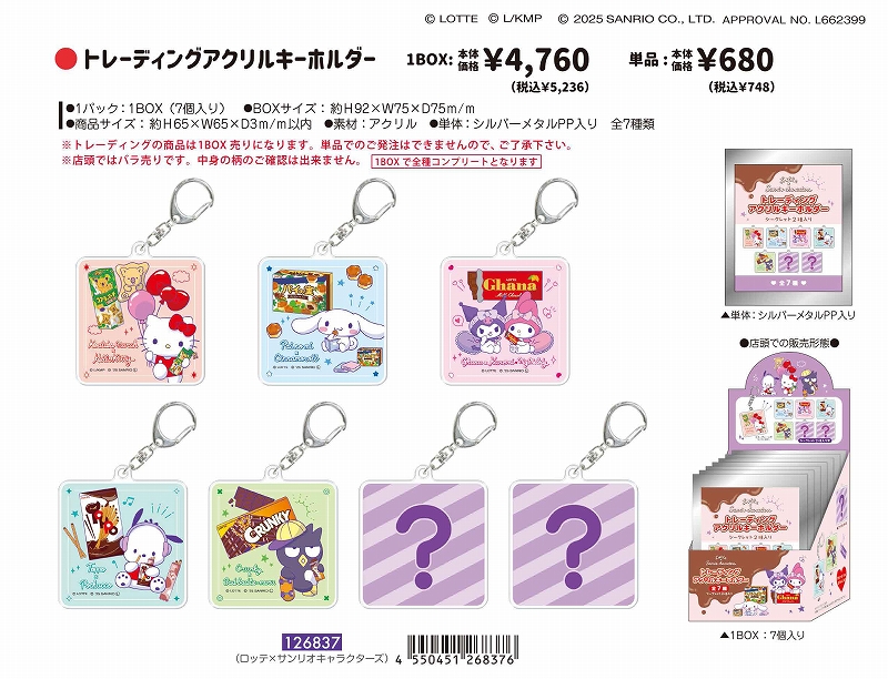 ■CRUX(クラックス)■■2026SS 先行予約■ ロッテ×サンリオキャラクターズ トレーディングアクリルキーホルダー BOX