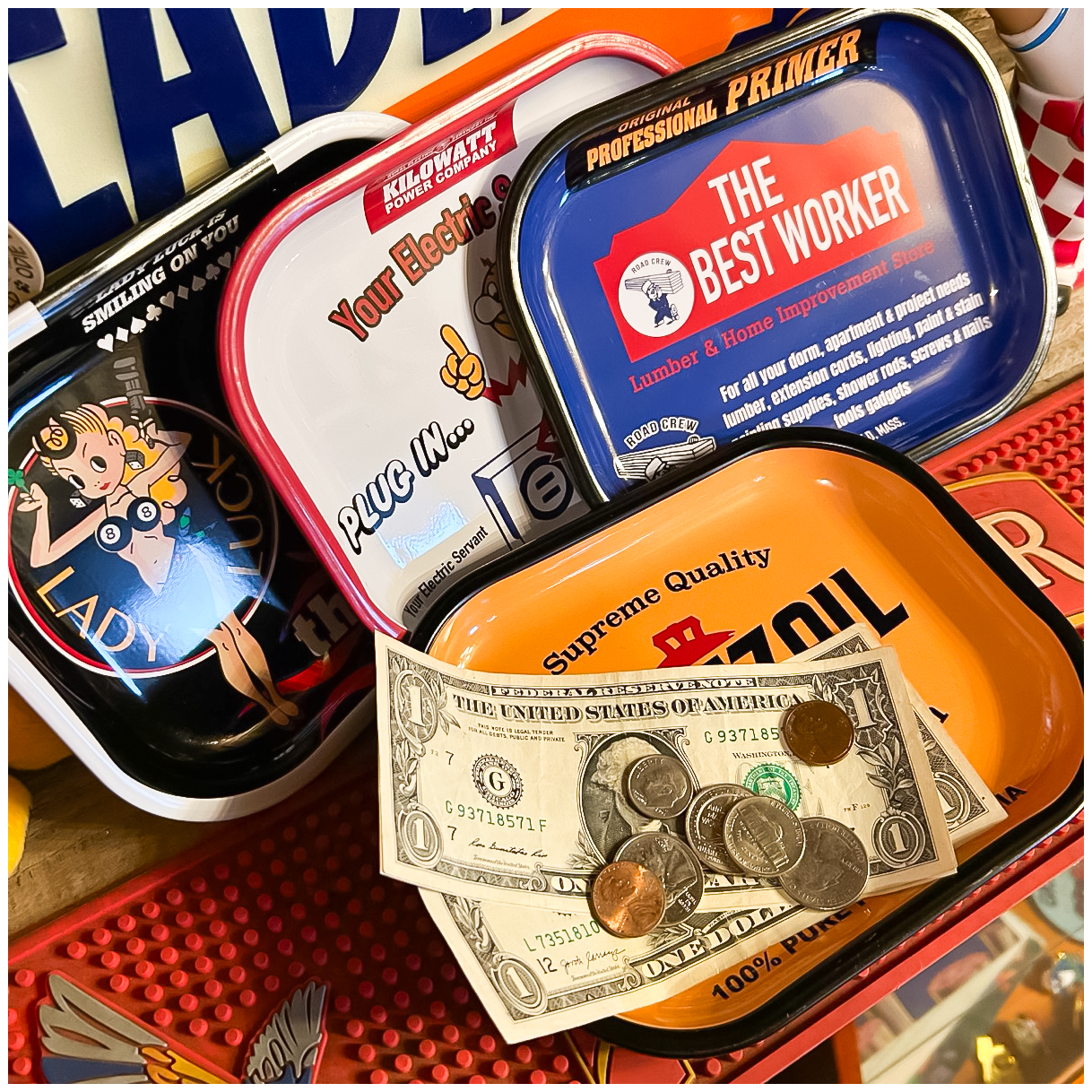 ヴィンテージポップなデザインが目を引ひくミニトレイ♪