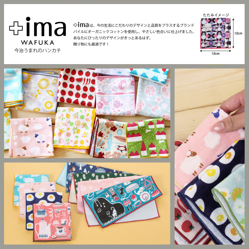 今治生まれのガーゼパイルハンカチ【+ima】シリーズ。