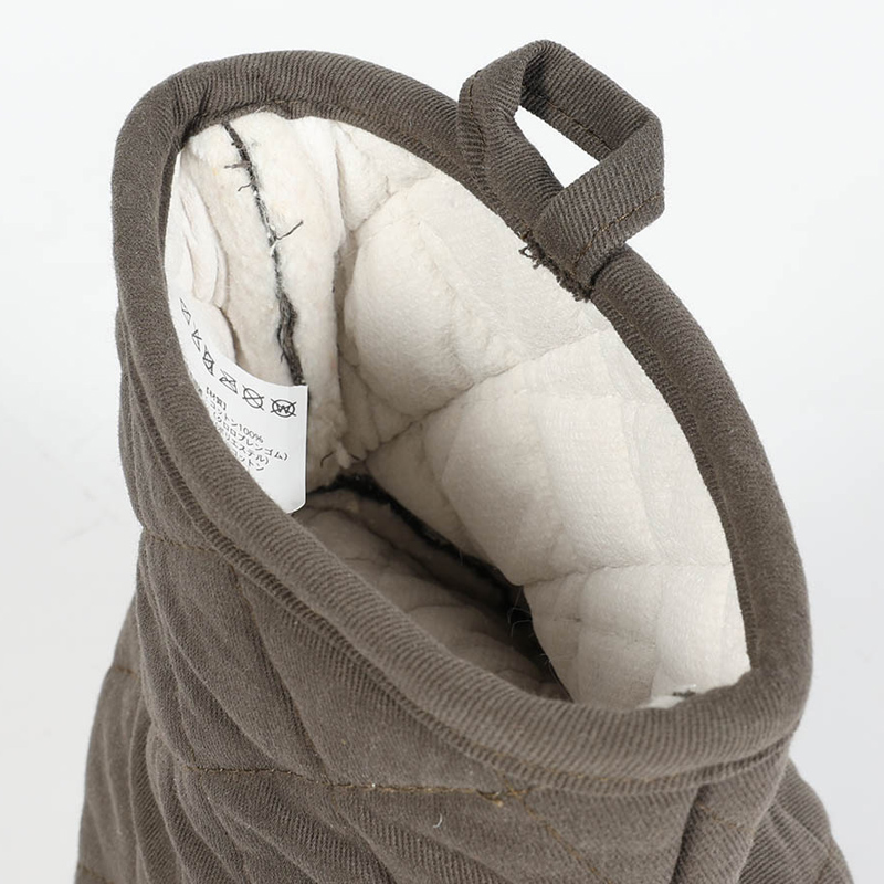 | 素材 | 表面繊維:コットン100% その他:クロロプレンゴム 裏地:ポリエステル 中綿:リサイクルコットン |