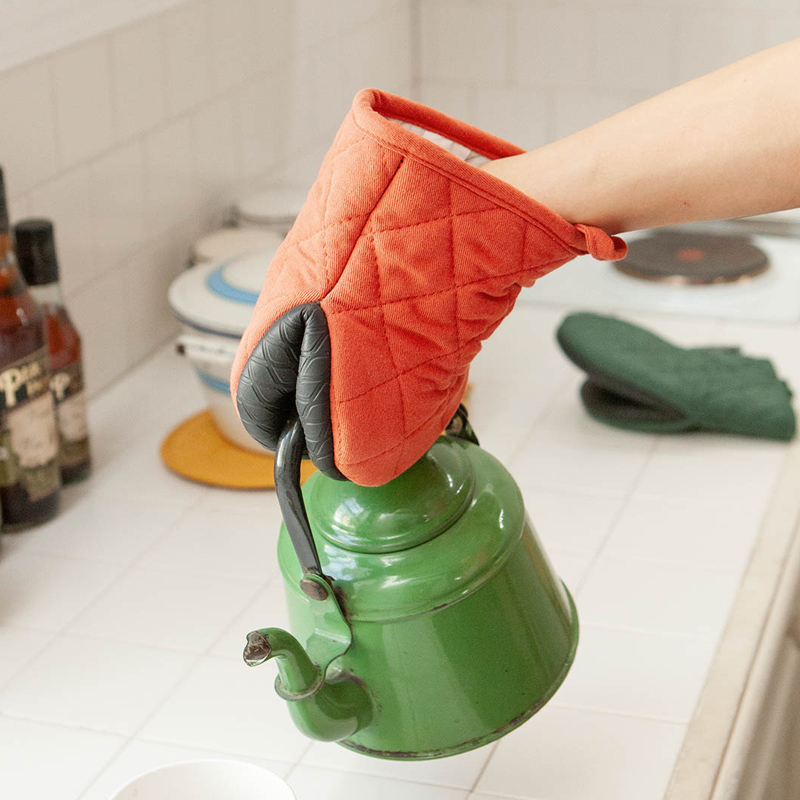 キッチンでもアウトドアでも頼れるタフさと、豊富なカラーバリエーションが魅力のミトン。