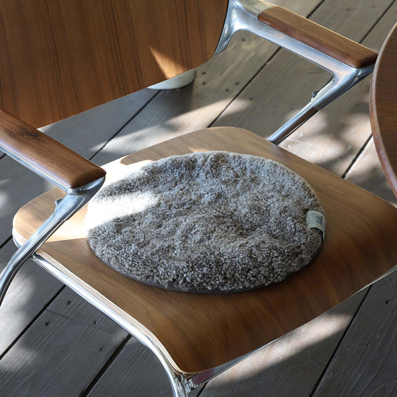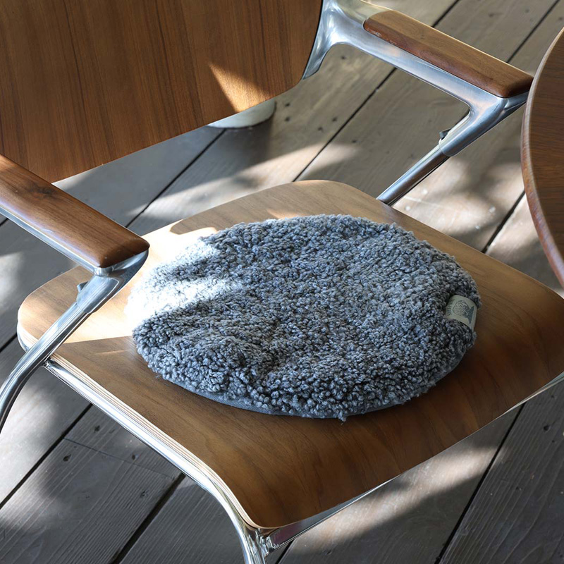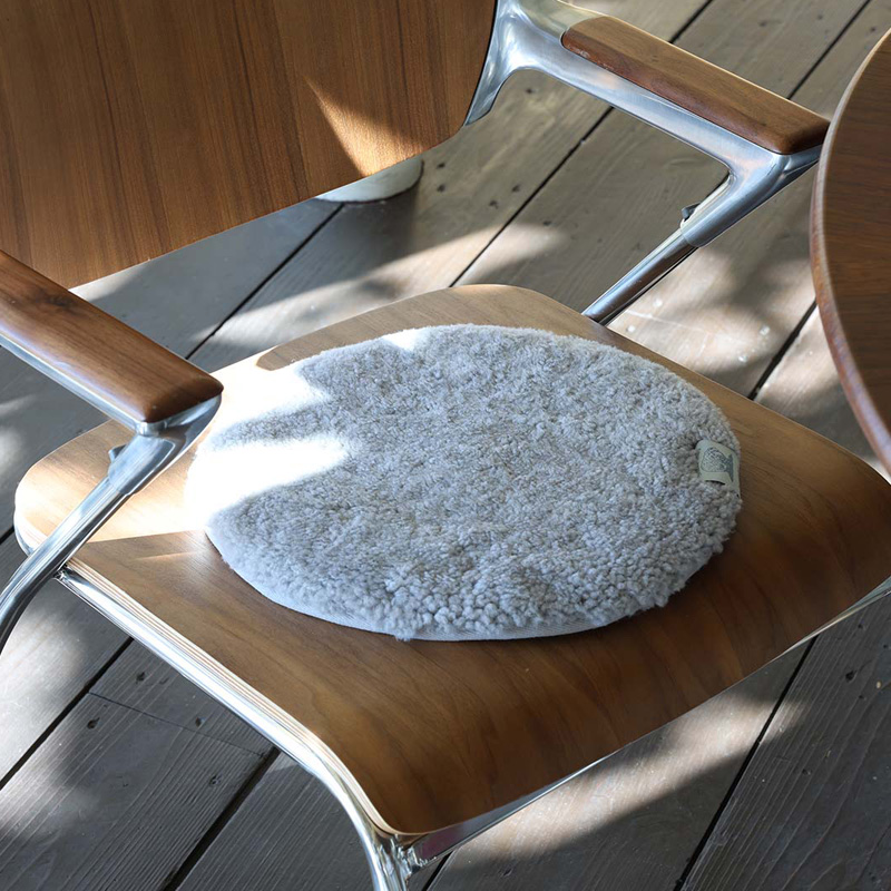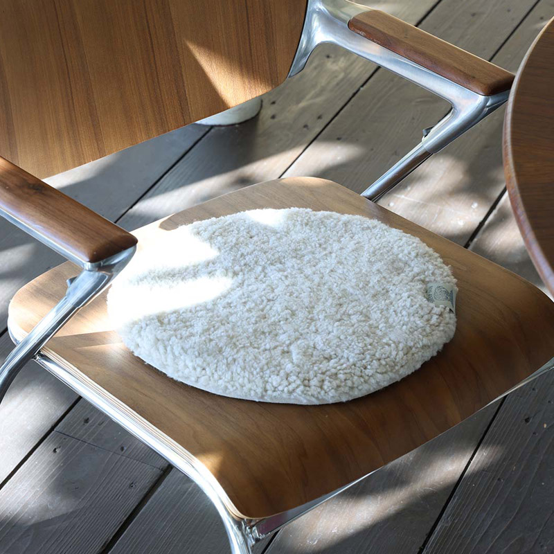 ふんわりとした羊毛の質感が、冷えを和らげるチェアパッド。