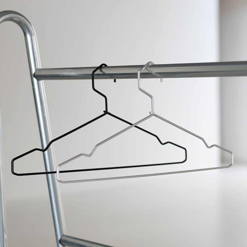 アルミニウムの頼もしさを、六角型のミニマルなフォルムに落とし込んだハンガーです。