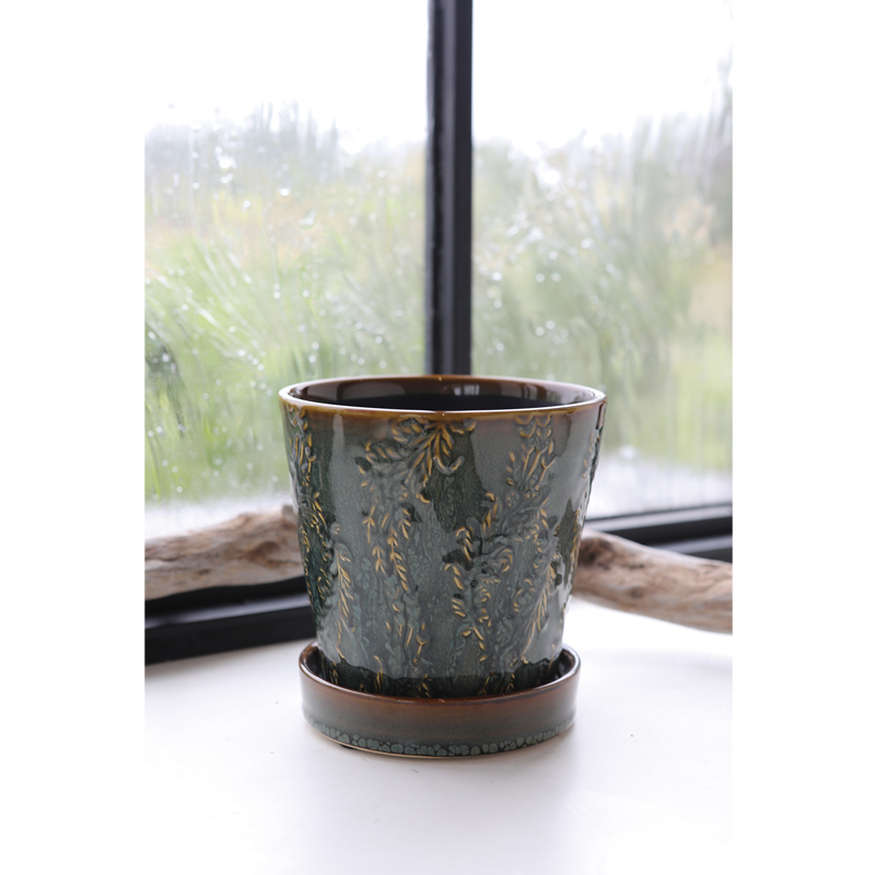 | サイズ | φ13.5×H12.5cm、口径:φ12cm、深さ:11.5cm ソーサーサイズ:φ11.5cm×H2.5cm、ソーサー内寸:φ10.5×H1.5cm 穴あり |