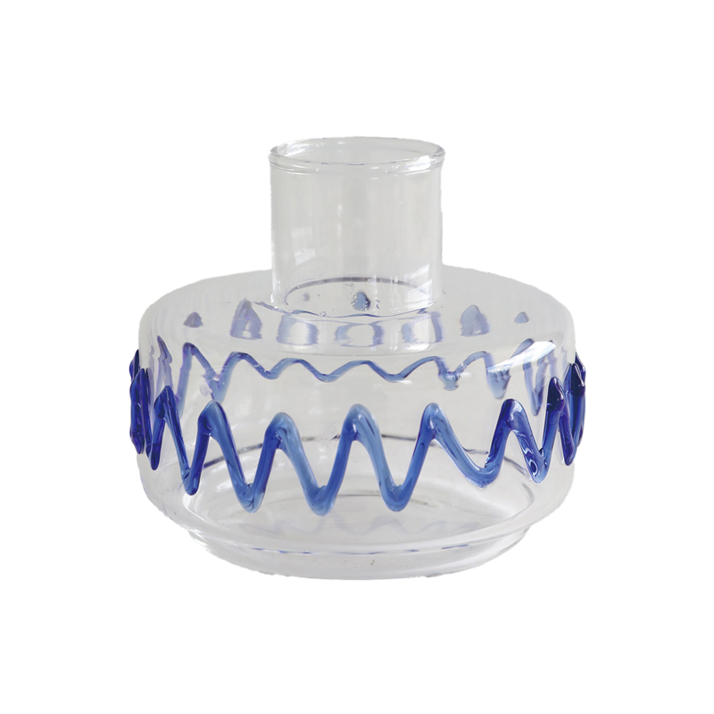 どこかリズミカルな波のパターンがモダンで遊び心のあるガラスベース。
