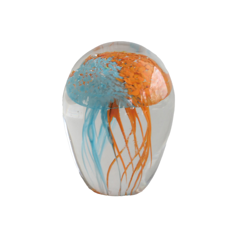 透明なガラスの中に優雅に漂うクラゲのオブジェ。