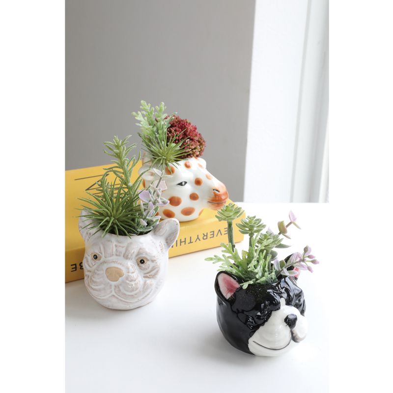 フェイクの多肉とデフォルメされた愛らしいアニマルの表情が魅力です。