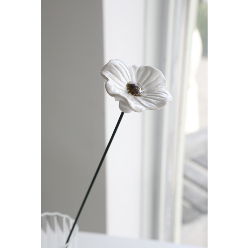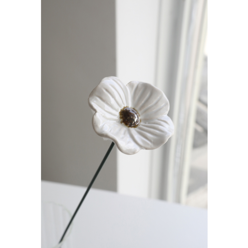 丸みを帯びた花びらは、陶器ならではのふっくらとした質感と柔らかなカーブで表現されています。