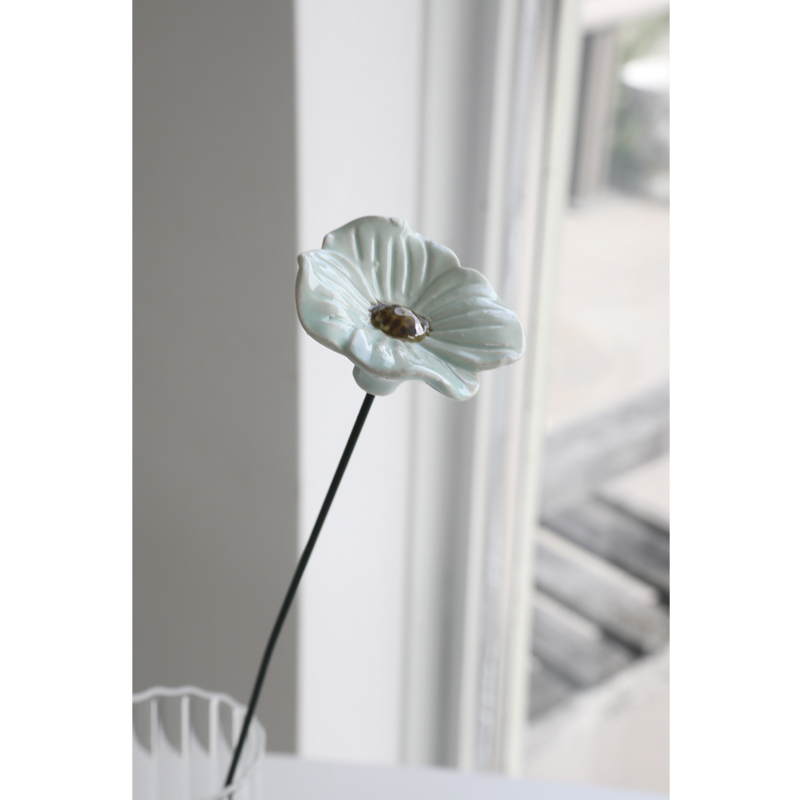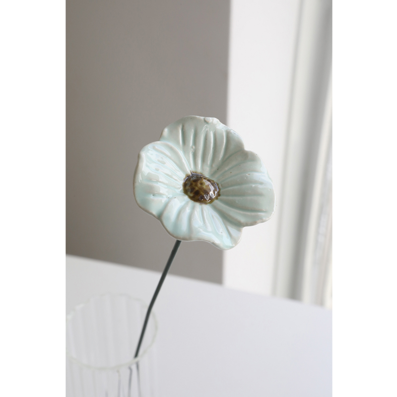 丸みを帯びた花びらは、陶器ならではのふっくらとした質感と柔らかなカーブで表現されています。