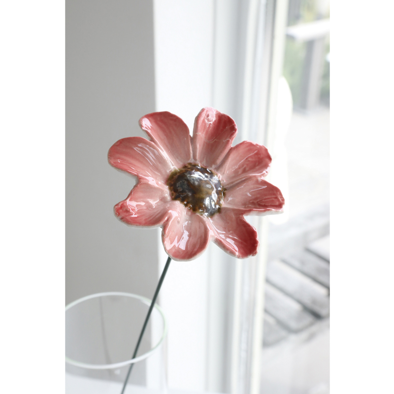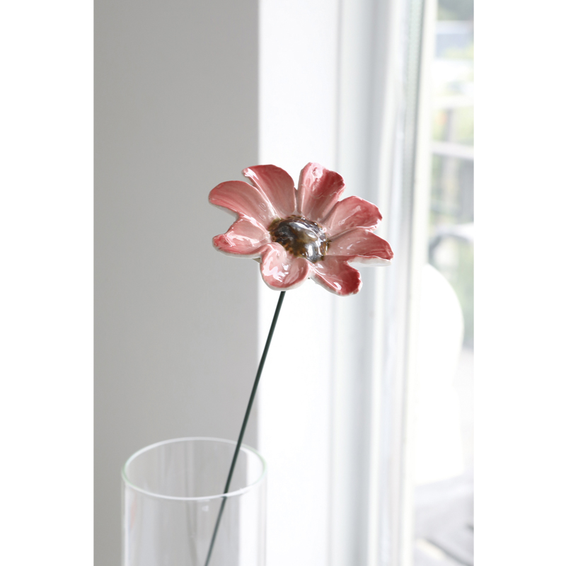 丸みを帯びた花びらは、陶器ならではのふっくらとした質感と柔らかなカーブで表現されています。