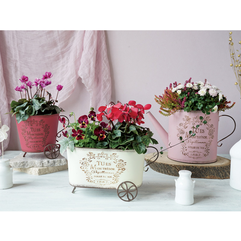 淡いカラーがオシャレなブリキガーデンポットシリーズ!!