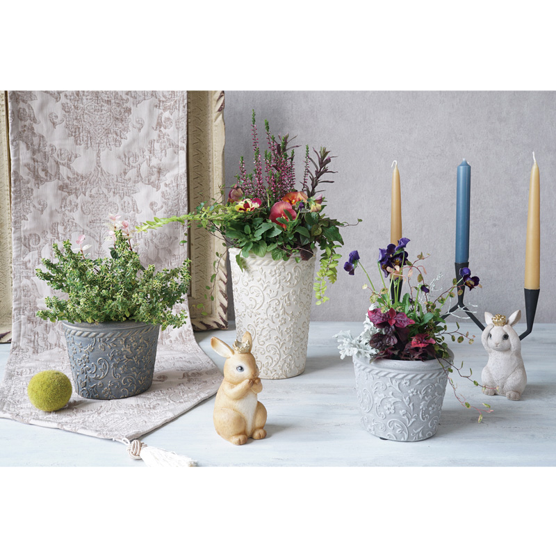 繊細な模様が美しいセメントポットシリーズ。