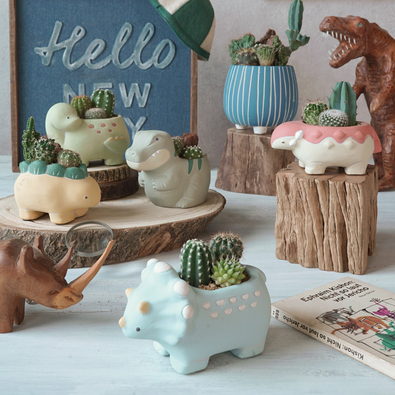 ポップで可愛い恐竜モチーフのフラワーポット☆