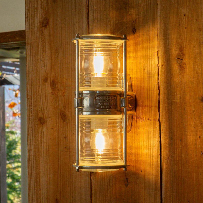金属とガラスの組み合わせが、工業的な魅力を引き立てるウォールランプ。