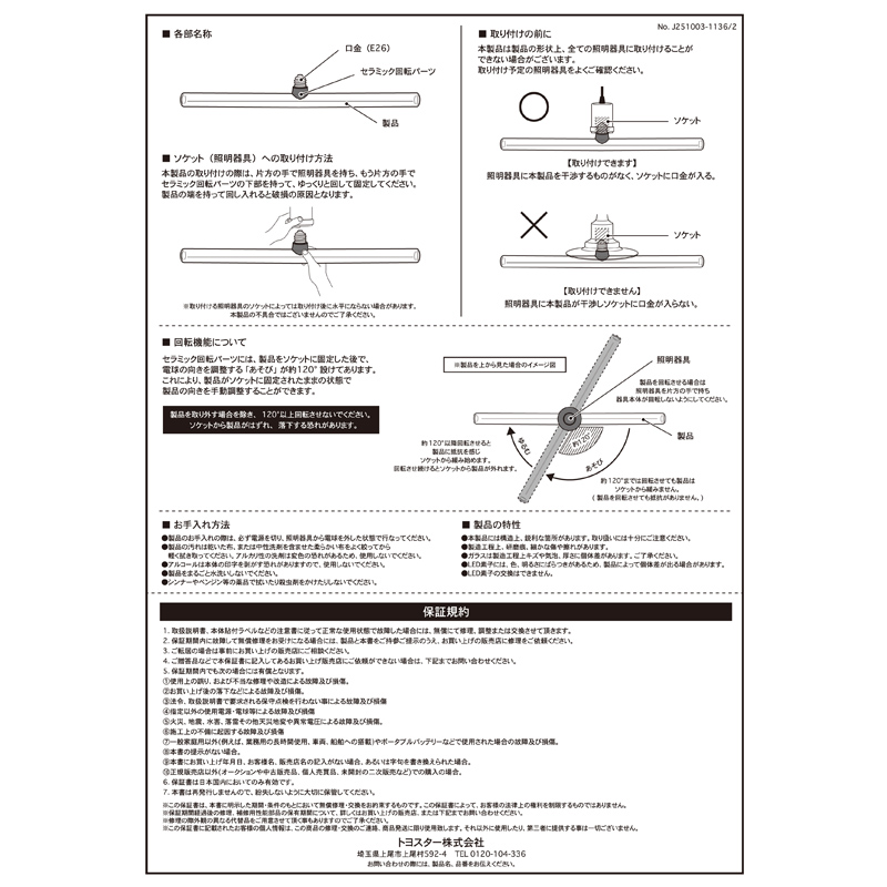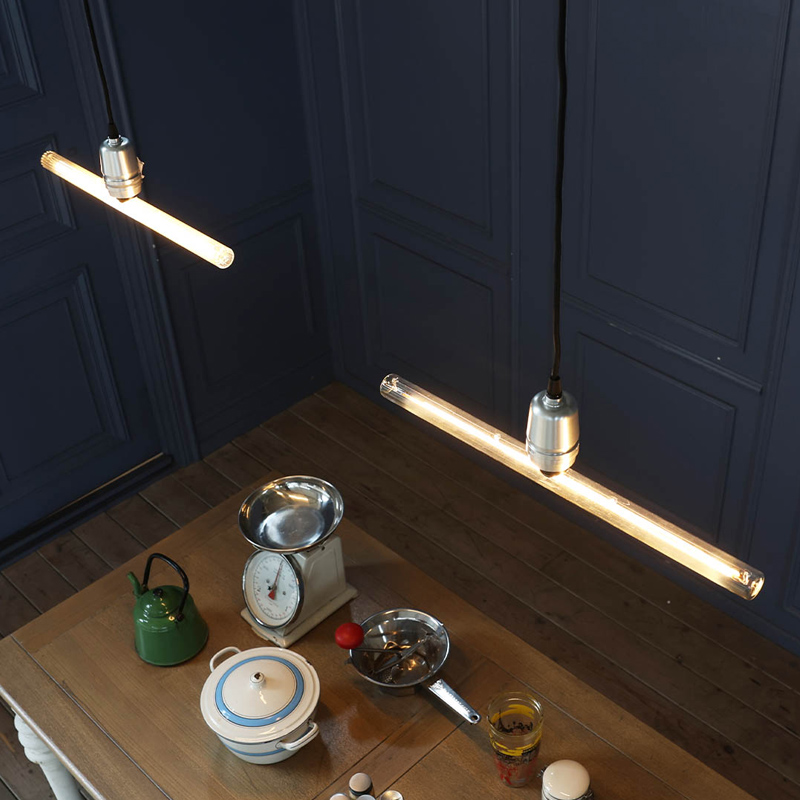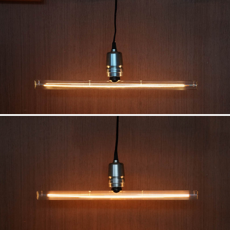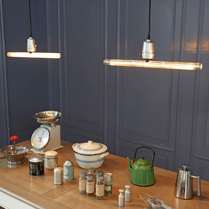 蛍光灯のような水平の灯を、一般的なソケット(口金E26)に取り付けるだけで手軽に実現できます。