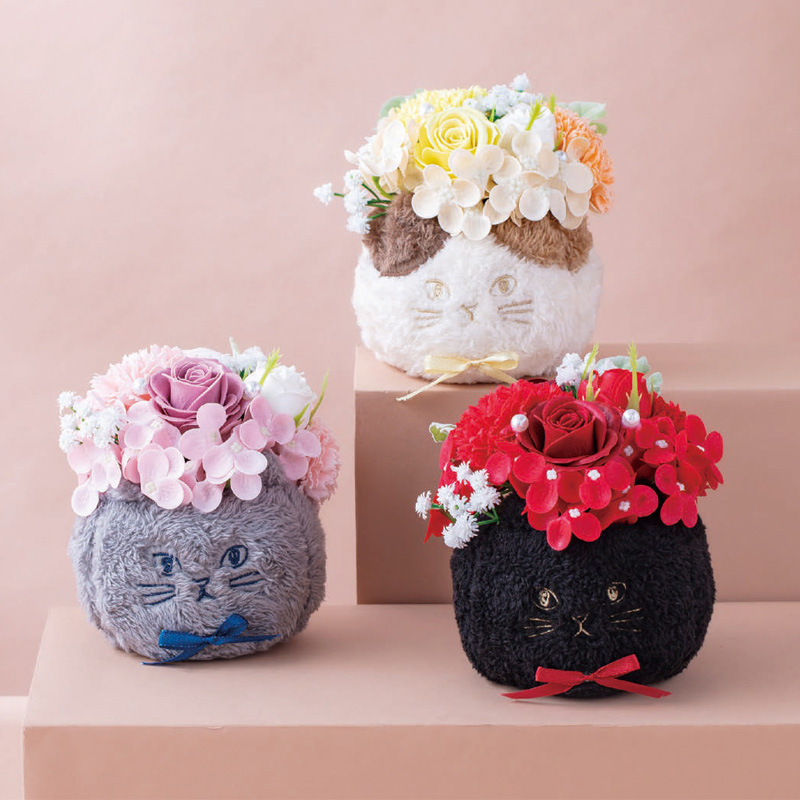 ネコ好きさんに贈りたい大人可愛いソープフラワーが出来ました。