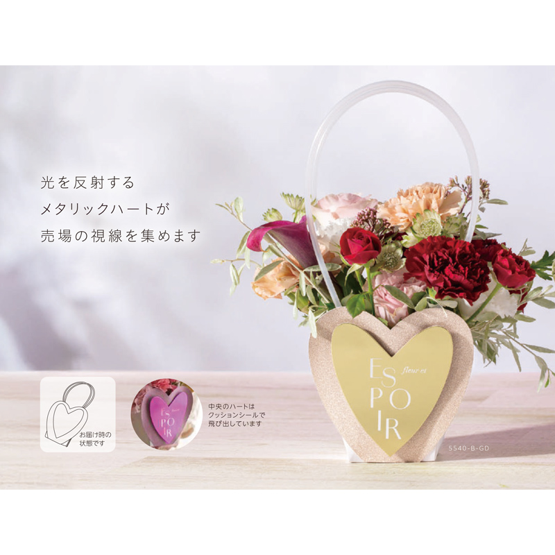 光を反射するメタリックハートが売り場の視線を集めそう!