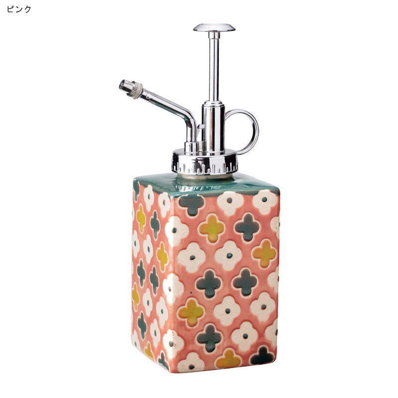 素朴な柄を全面にプリントした陶器製霧吹き♪