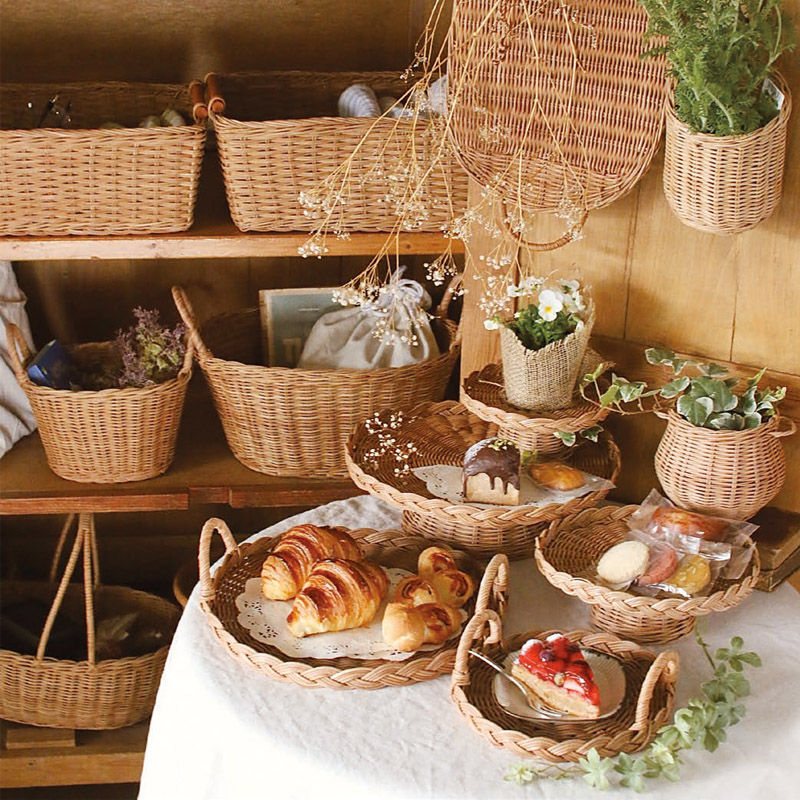 ナチュラルな風合いが魅力のラタン素材を使用したバスケットシリーズ。