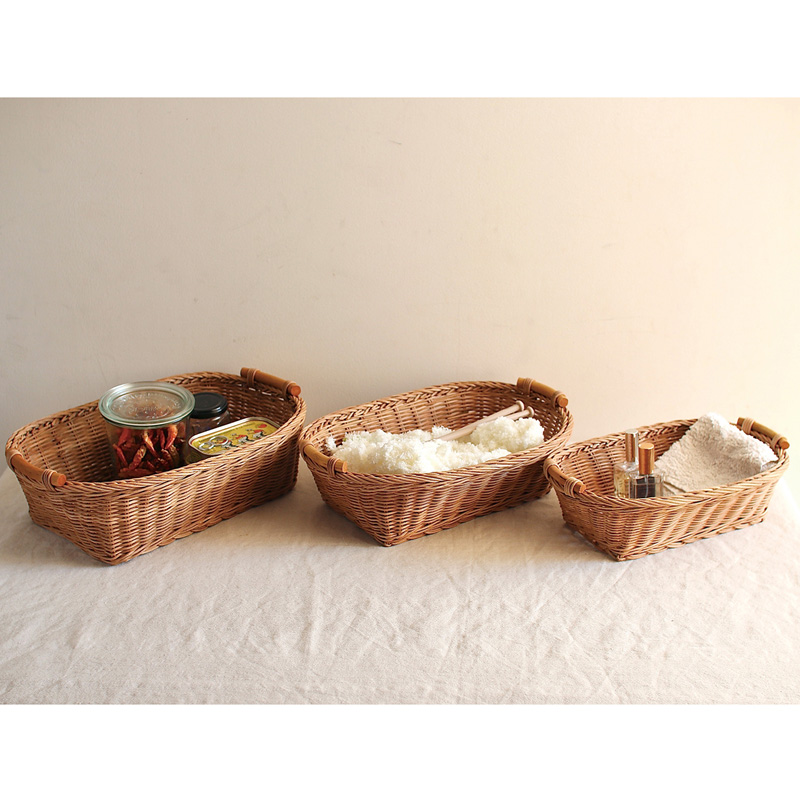 ナチュラルな風合いが魅力のラタン素材を使用したバスケットシリーズ。