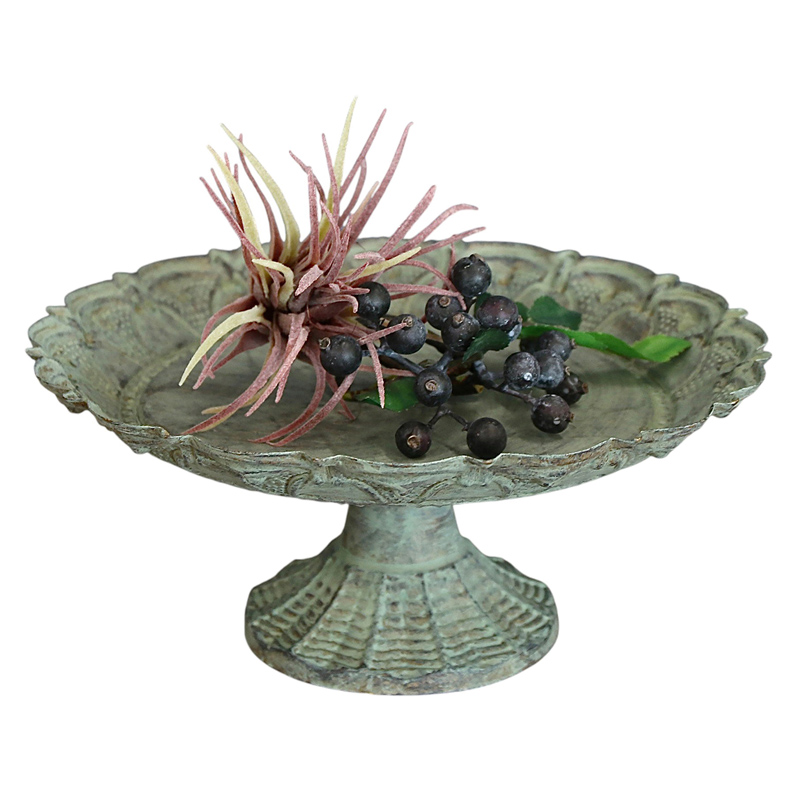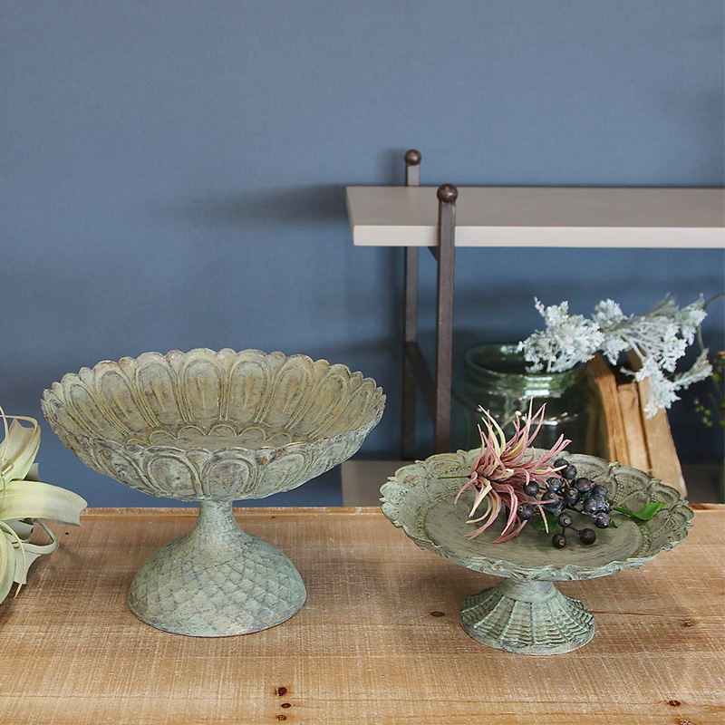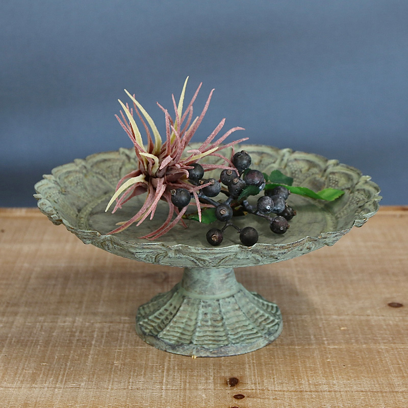繊細な装飾と、緑青のようなくすみを帯びたアンティーク調の仕上げが、