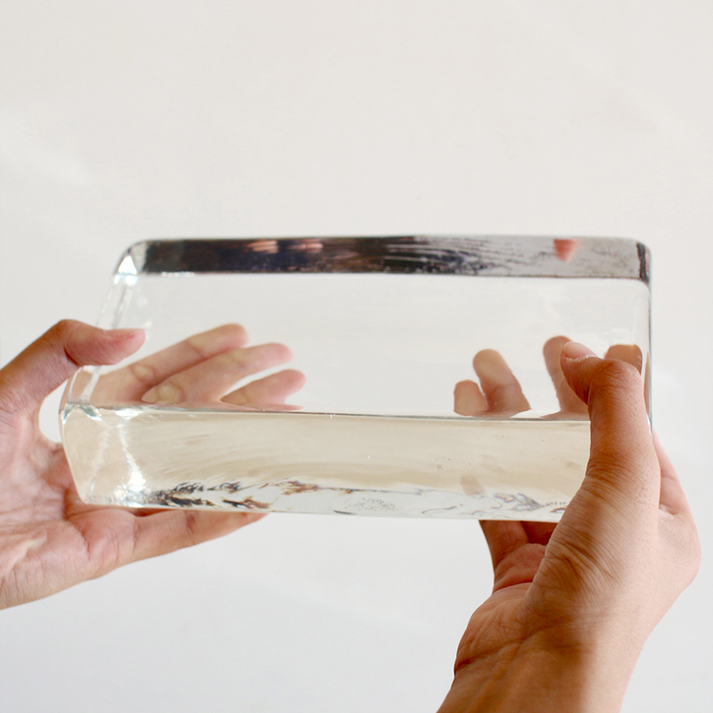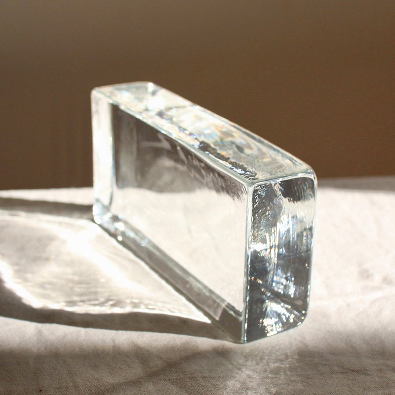 透明感のあるガラスに表情豊かなテクスチャを施したガラスブロックタイル。