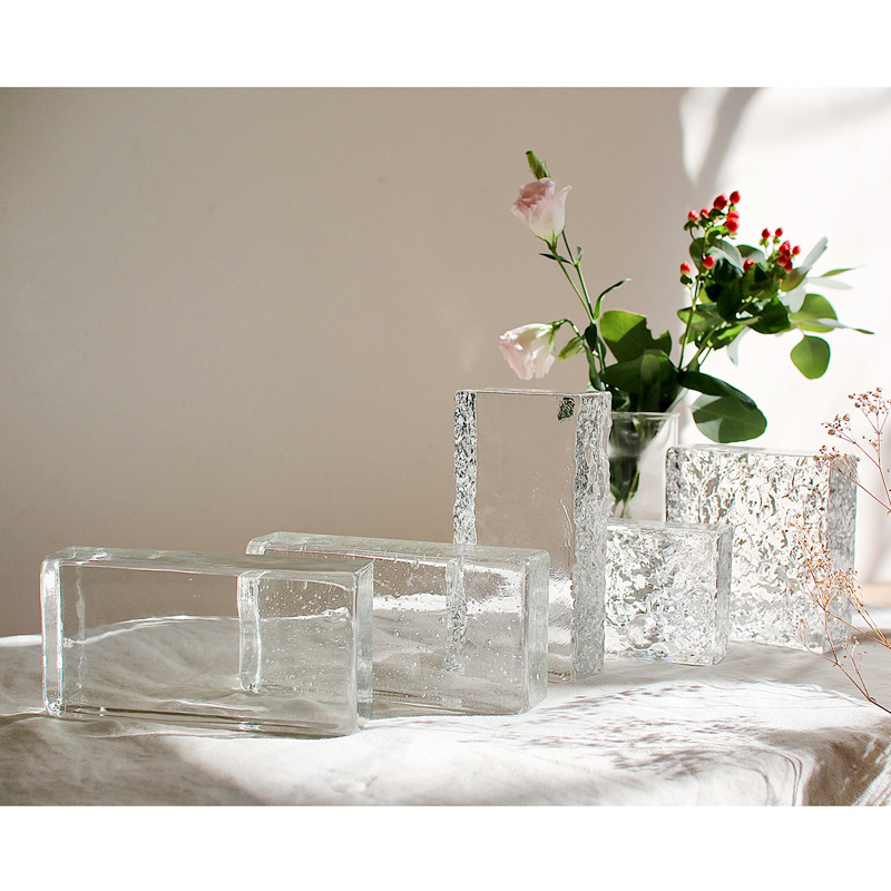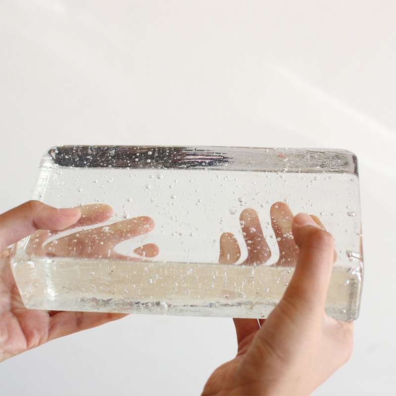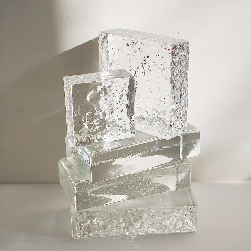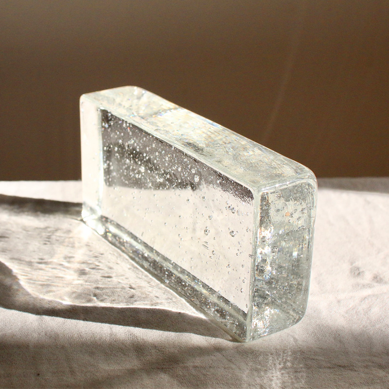 透明感のあるガラスに表情豊かなテクスチャを施したガラスブロックタイル。