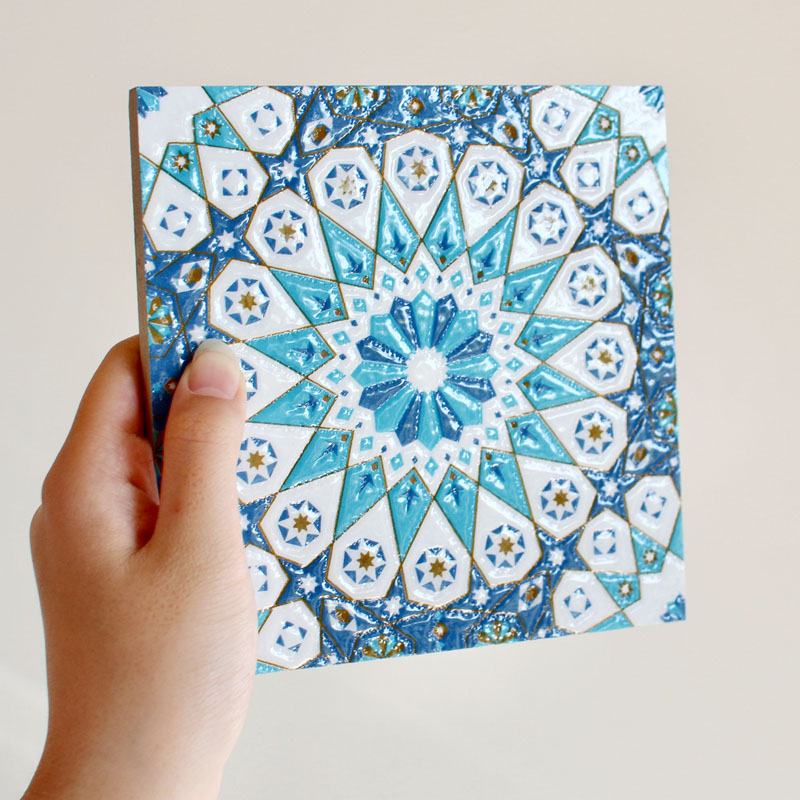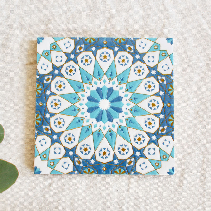 爽やかなブルーを基調に、異国情緒あふれるデザイン性の高いモザイクタイル。